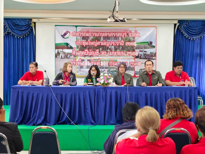 19 กันยายน 2568 นางสาวมนกรณ์ ยอดใจ ผู้อำนวยการศูนย์ถ่ายทอดเทคโนโลยีการสหกรณ์ที่ 13 พร้อมทีมงานศูนย์ฯ เข้าร่วมการประชุมใหญ่สามัญประจำปี ครั้งที่ 51 สำหรับปีบัญชีสิ้นสุดวันที่ 30 เมษายน 2568 ของสหกรณ์การเกษตรสรรคบุรี จำกัด โดยมี นางทวีสุข เถลิงศักดาเดช สหกรณ์จังหวัดชัยนาท เป็นประธานในพิธีเปิดฯ ณ ห้องประชุมสหกรณ์การเกษตรสรรคบุรี จำกัด อำเภอสรรคบุรี จังหวัดชัยนาท