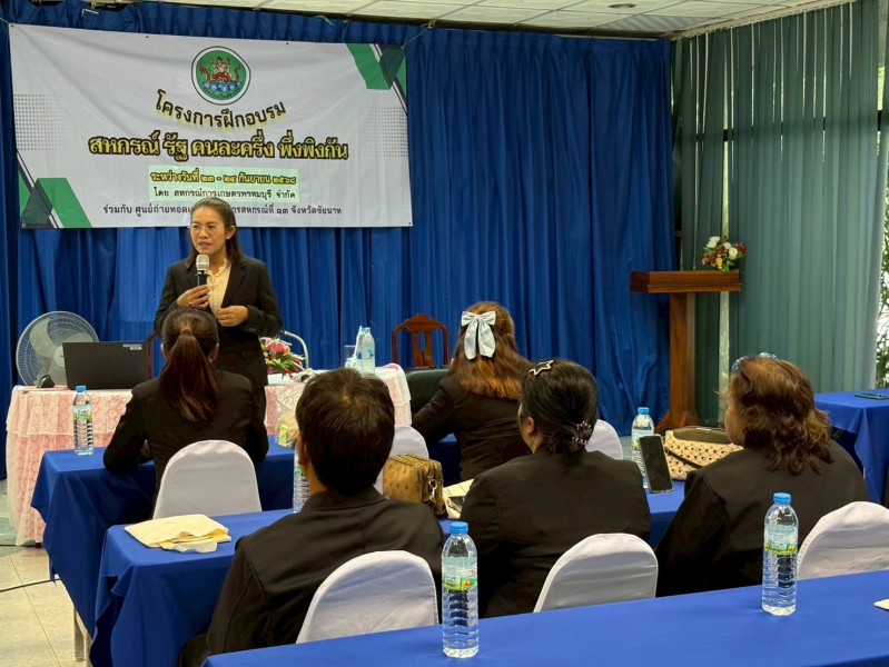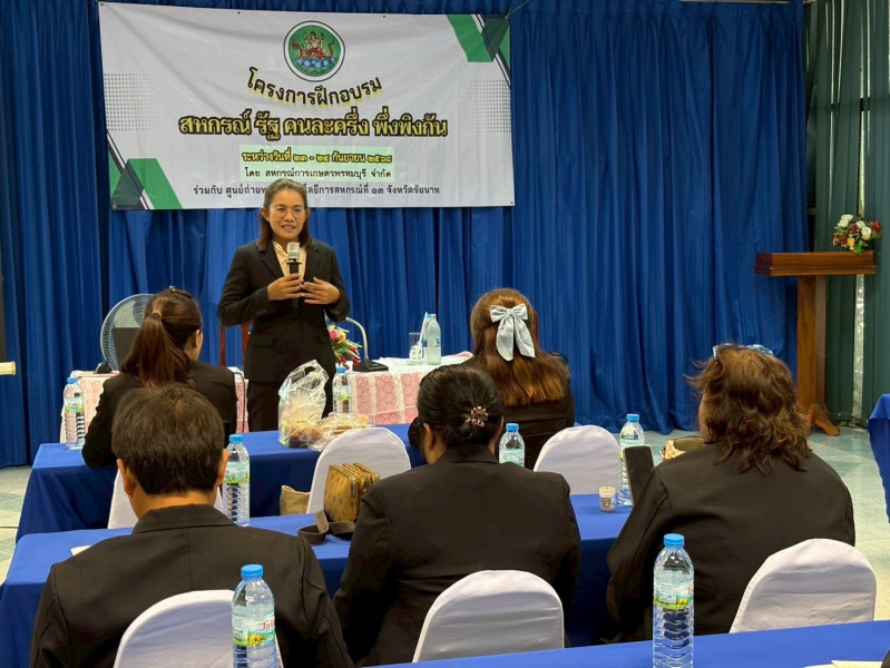 23 - 24 กันยายน 2568 นางสาวมนกรณ์ ยอดใจ ผู้อำนวยการศูนย์ถ่ายทอดเทคโนโลยีการสหกรณ์ที่ 13 จังหวัดชัยนาท พร้อมบุคลากรศูนย์ ฯ ดำเนินการจัดโครงการสหกรณ์ รัฐ คนละครึ่ง พึ่งพิงกัน หลักสูตร เสริมสร้างบุคลิกภาพและพัฒนาทักษะการสื่อสารสำหรับบุคลากรสหกรณ์ โดยได้รับเกียรติจาก นายสนธยา ศรีเวียงธวัช เป็นวิทยากรบรรยายและฝึกปฏิบัติการพัฒนาบุคลิกภาพ กลุ่มเป้าหมายได้แก่ คณะกรรมการ ฝ่ายจัดการ และสมาชิกชั้นนำของสหกรณ์การเกษตรพรหมบุรีจำกัด เจ้าหน้าที่และผู้สังเกตการณ์ จำนวน 1 รุ่น 35 คน ณ ห้องประชุมรุ่งอรุณ ฟิชชิ่งปาร์ค รีสอร์ท อำเภอพรหมบุรี จังหวัดสิงห์บุรี