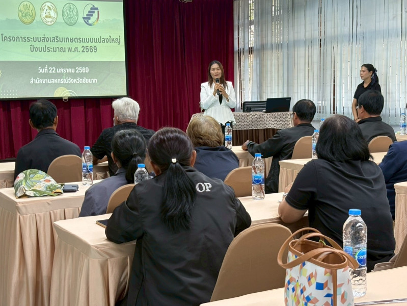 22 มกราคม 2569 นางสาวมนกรณ์ ยอดใจ ผู้อำนวยการศูนย์ถ่ายทอดเทคโนโลยีการสหกรณ์ที่ 13 ให้การต้อนรับสำนักงานสหกรณ์จังหวัดชัยนาท ในการใช้ห้องประชุมจัดโครงการระบบส่งเสริมเกษตรแบบแปลงใหญ่ ปีงบประมาณ พ.ศ. 2569 โดยมีวัตถุประสงค์เพื่อส่งเสริมให้แปลงใหญ่มีการบริหารจัดการร่วมกันอย่างเป็นระบบและมีประสิทธิภาพโดยครอบคลุมตั้งแต่การวางแผนการผลิตการใช้และการจัดการปัจจัยการผลิต การประสิทธิภาพการผลิตการพัฒนาคุณภาพมาตรฐานสินค้า การสร้างมูลค่าเพิ่ม ตลอดจนบริหารจัดการตลาด ทั้งนี้ เพื่อให้เกษตรกรสามารถลดต้นทุนการผลิตเพื่อเพิ่มผลผลิตต่อไร่และสร้างรายได้ที่มั่นคงยั่งยืน ณ ห้องประชุมยูงทอง อำเภอสรรพยา จังหวัดชัยนาท