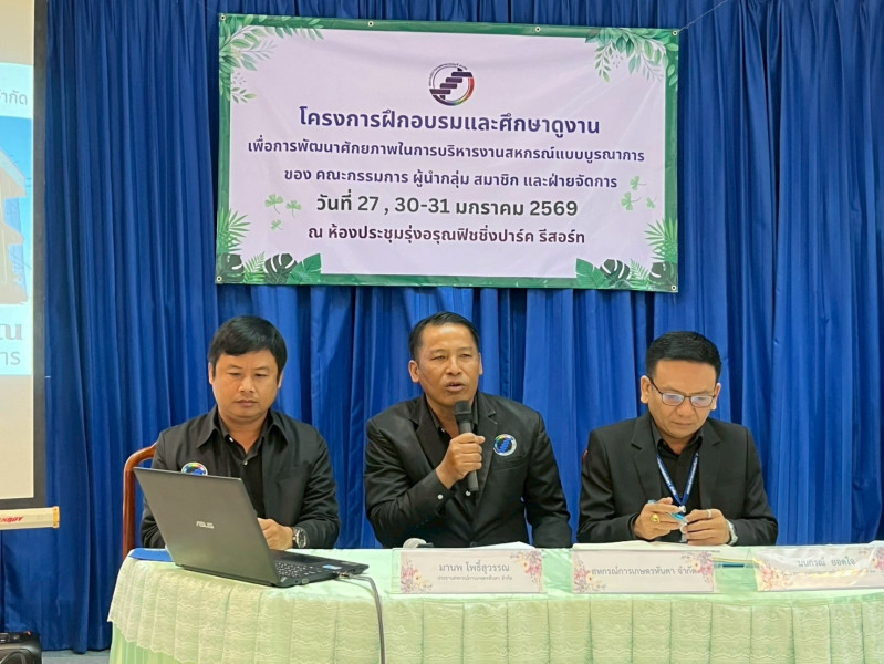 27 มกราคม 2569 นางสาวมนกรณ์ ยอดใจ ผู้อำนวยการศูนย์ถ่ายทอดเทคโนโลยีการสหกรณ์ที่ 13 จังหวัดชัยนาท พร้อมด้วยบุคลากร ร่วมกับสหกรณ์การเกษตรพรหมบุรี จำกัด จัดโครงการสหกรณ์ รัฐ คนละครึ่ง พึ่งพิงกัน หลักสูตร พัฒนาศักยภาพผู้นำสหกรณ์ และฝ่ายจัดการอย่างมีประสิทธิภาพ โดยมีนายสุทธิศักดิ์ โภคาพานิช สหกรณ์จังหวัดสิงห์บุรี มอบแนวทางการพัฒนาศักยภาพผู้นำสหกรณ์และฝ่ายจัดการ และมีนายนามพ โพธิ์สุวรรณ ประธานสหกรณ์การเกษตรหันคา จำกัด พร้อมคณะ ร่วมแลกเปลี่ยนประสบการณ์การบริหารงานสหกรณ์ มีวัตถุประสงค์เพื่อให้ผู้นำสหกรณ์ ได้แก่ คณะกรรมการ ประธานกลุ่ม เลขานุการกลุ่ม หรือสมาชิกชั้นนำ และฝ่ายจัดการมีความรู้ ความเข้าใจในบทบาทหน้าที่ของตนเอง และเพื่อให้ผู้นำสหกรณ์ และฝ่ายจัดการสหกรณ์ มีส่วนร่วมในการพัฒนาสหกรณ์ให้เกิดความเข้มแข็ง และแก้ไขปัญหาต่างๆให้สมาชิกสหกรณ์ ตามแผนงานที่กำหนดไว้ของสหกรณ์อย่างมีประสิทธิภาพ กลุ่มเป้าหมาย ได้แก่ คณะกรรมการดำเนินงาน ประธานกลุ่ม เลขานุการกลุ่ม สมาชิกชั้นนำของสหกรณ์การเกษตรพรหมบุรี จำกัด ฝ่ายจัดการสหกรณ์ รวมทั้งหมด 38 คน ณ ห้องประชุมรุ่งอรุณ ฟิชชิ่งปาร์ค รีสอร์ท อำเภอพรหมบุรี จังหวัดสิงห์บุรี
